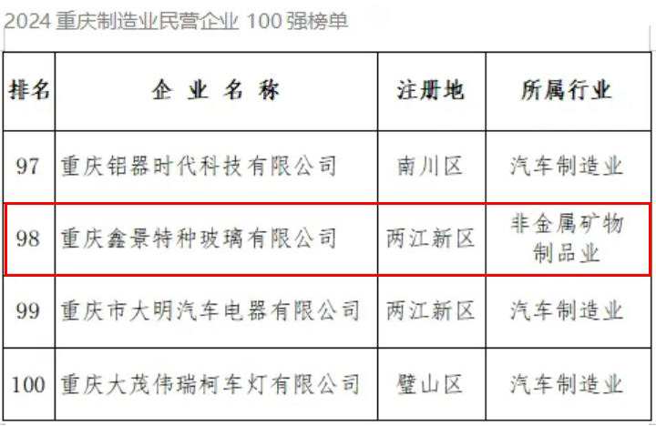重慶制造業百強企業是地區制造企業的標桿和推動經濟發展的中流砥柱,也是窺見制造業轉型發展的“風向標”。公司十余年堅持創新引領的發展道路,專注高端特種玻璃新材料領域的研發與應用,實現了關鍵技術突破,產品贏得了市場的青睞。